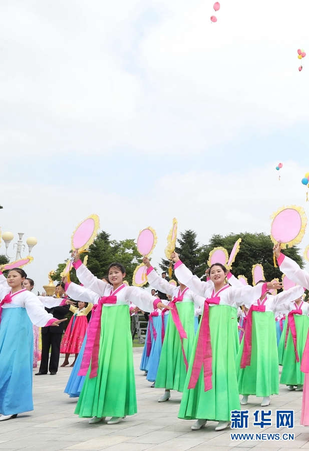这是朝鲜民众在锦绣山太阳宫广场热烈欢迎习近平。新华社记者 黄敬文 摄