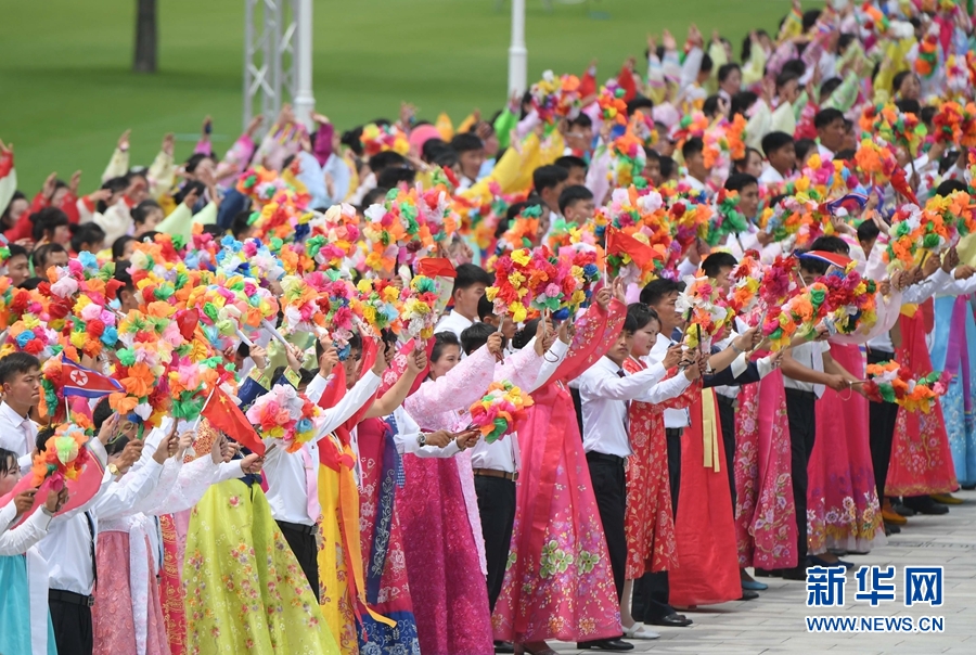 6月20日,中共中央总书记、国家主席习近平乘专机抵达平壤,开始对朝鲜民主主义人民共和国进行国事访问。这是朝鲜民众在锦绣山太阳宫广场热烈欢迎习近平。新华社记者 申宏 摄