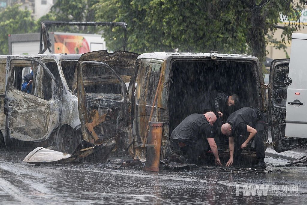 当地时间2019年6月20日,瑞士Le Mont-sur-Lausanne,一辆运钞车遭抢劫,袭击者抢走了一些现金,路边停放的几辆车也在袭击中被点燃。