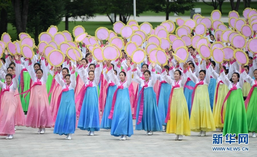 6月20日,中共中央总书记、国家主席习近平乘专机抵达平壤,开始对朝鲜民主主义人民共和国进行国事访问。这是朝鲜民众在锦绣山太阳宫广场热烈欢迎习近平。新华社记者 申宏 摄