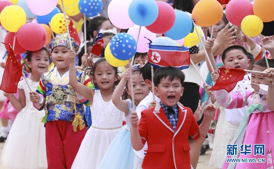 6月20日,中共中央总书记、国家主席习近平乘专机抵达平壤,开始对朝鲜民主主义人民共和国进行国事访问。这是朝鲜儿童在平壤顺安机场热烈欢迎习近平。新华社记者 庞兴雷 摄