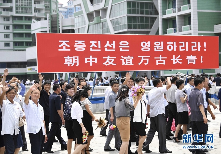 6月20日,中共中央总书记、国家主席习近平乘专机抵达平壤,开始对朝鲜民主主义人民共和国进行国事访问。这是在平壤街头欢迎习近平来访的朝鲜民众。新华社记者 燕雁 摄