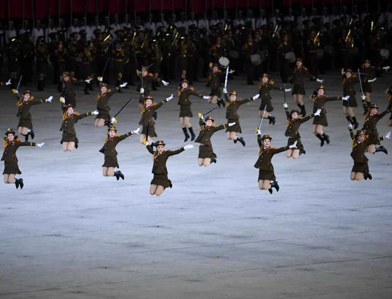 ▲2018年9月9日,演员在平壤绫罗岛“五一”体育场表演“辉煌的祖国”。新华社记者邢广利摄