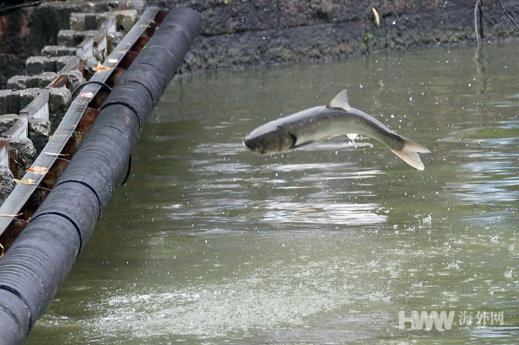 杭州西湖开闸放水 “鱼跃龙门”频上演