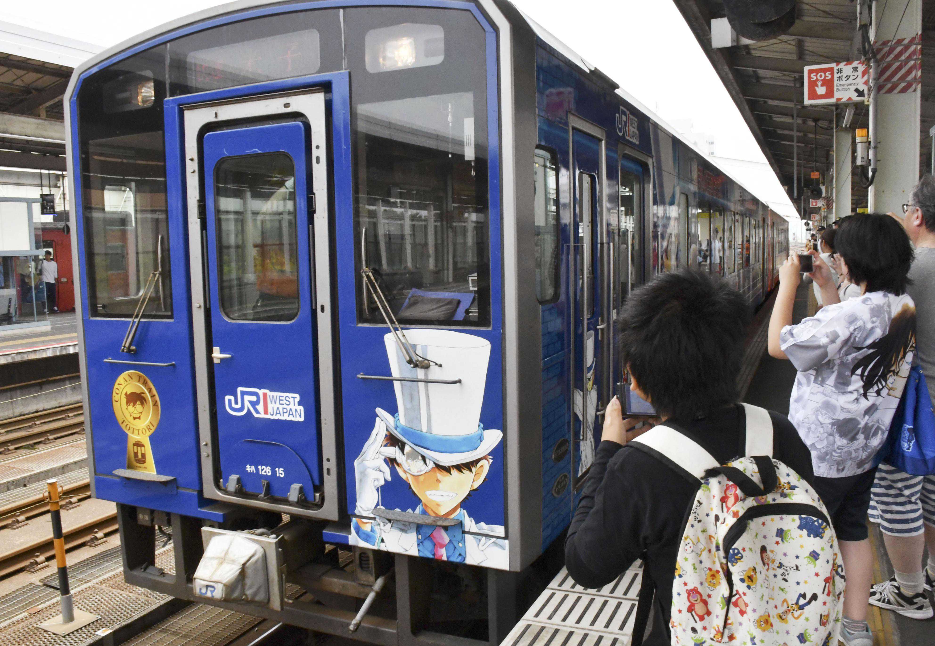 车身外侧绘有主人公柯南和竞争对手怪盗基德对决的一幕,还有与女主人公毛利兰恋爱的情形等著名场景,也下功夫设计成让粉丝能够与等身大小的动漫角色一同合影。车内厕所入口处也画有柯南。来源:IC