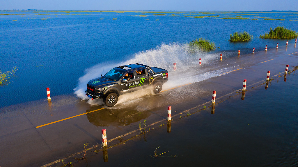 江西九江:鄱阳湖水位上涨 再现“最美水上公路”