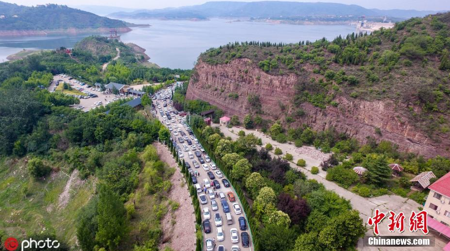 6月23日,河南洛阳,黄河小浪底开闸泄洪,游客激增,道路堵城停车场绵延十几公里。近日,位于洛阳孟津的黄河小浪底开闸泄洪,进行调水调沙,急流飞瀑喷涌而出,再现黄河之水天上来的美景,吸引大量游客前来观赏。6月23日,开闸泄洪的首个周末,小浪底景区游客激增,景区周边道路出现严重拥堵,绵延十几公里,道路变成了停车场。图片来源:ICphoto