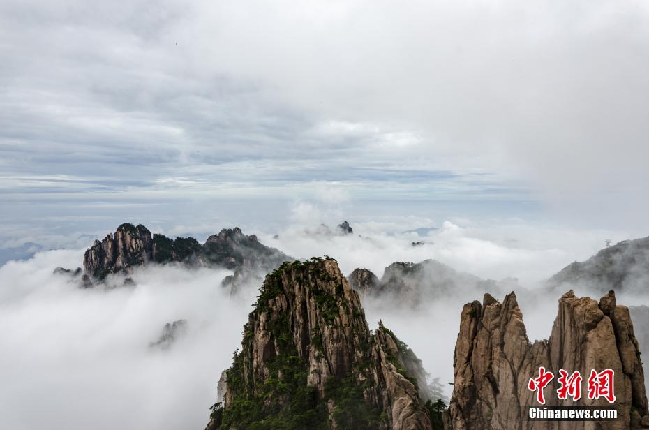 云雾聚拢成铺云之海,群峰浸润云海之间。文/刘浩 图/叶永清