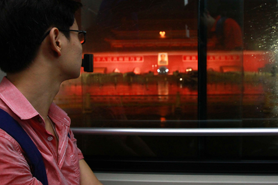 2014年9月23日,北京,乘客经过天安门。从2014年9月22日起,34条夜班公交线路每晚11时20分后上路运营。视觉中国供图