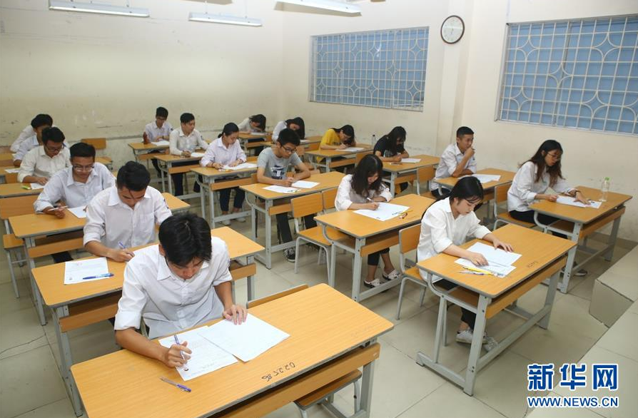 6月25日,越南首都河内,考生们参加考试。 2019年越南国家高中毕业和大学入学统一考试25日拉开帷幕,全国近88万考生参加考试。 新华社/越通社