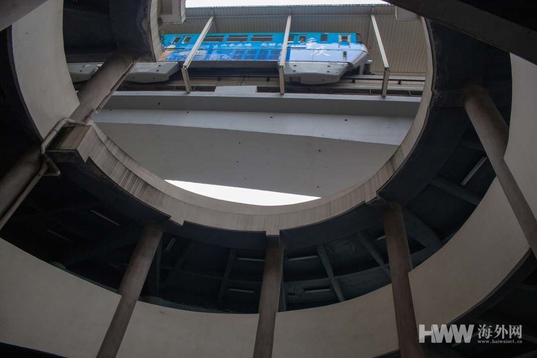 重庆再现“魔幻”建筑 螺旋停车场上过轻轨