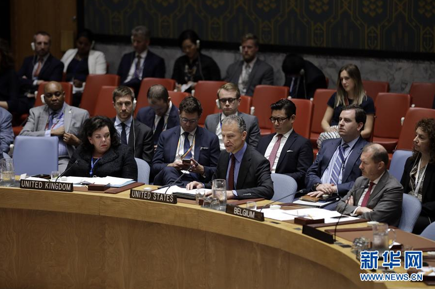 6月26日,在位于纽约的联合国总部,美国代理常驻联合国代表乔纳森·科恩(前中)在安理会伊核问题公开会上发言。 联合国负责政治和维和事务的副秘书长迪卡洛26日表示,美国和伊朗两国近来一系列举措使来之不易的伊核问题全面协议面临挑战,各方仍须从大局出发,继续执行伊核协议。 新华社记者李木子摄