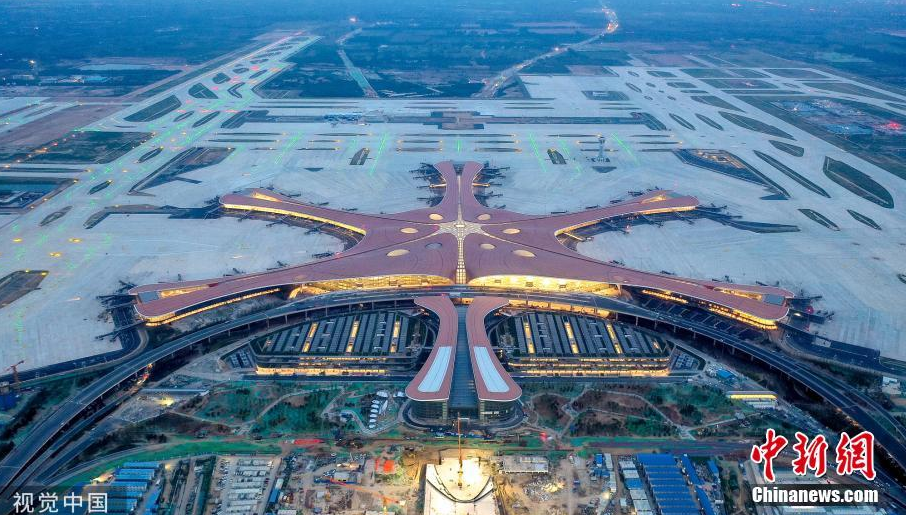 俯窥北京新机场 数万灯光点亮“凤凰”