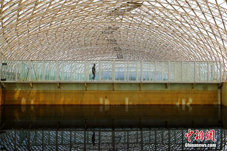 7月1日,山西省晋中市的老西醋博园内,醋湖内的山西老陈醋正进行晾晒。据悉,该醋湖长300米,宽24米,其中有7个醋池,可以容纳3千万斤老陈醋,可供山西人吃一个月。据悉,这是目前山西最大的醋湖,计划申请吉尼斯世界纪录。中新社记者 张云 摄