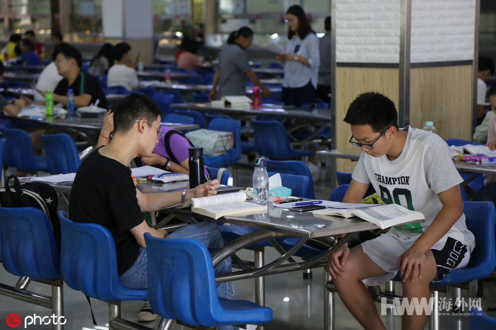 据在食堂内复习的学生介绍,寝室内没有安装空调,期末时图书馆座位又很紧俏,而食堂内空调开放,非常凉爽,还能够出声读背资料,因此在这里复习。(图:东方IC)