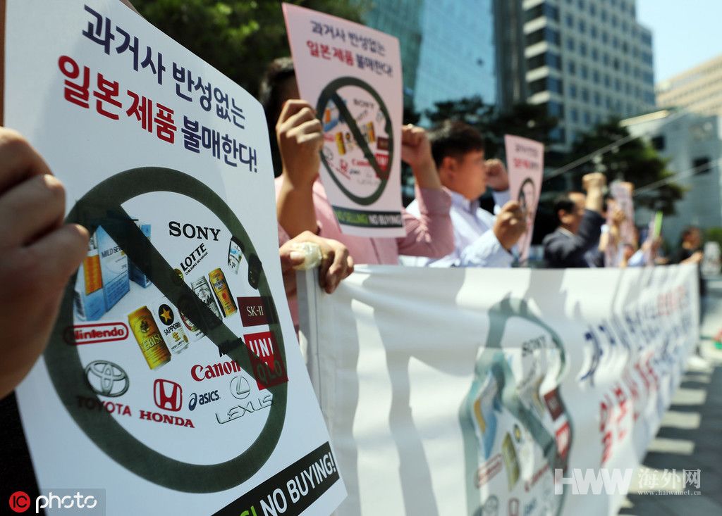 韩国民众在日使馆前集会 举牌呼吁“抵制日货”