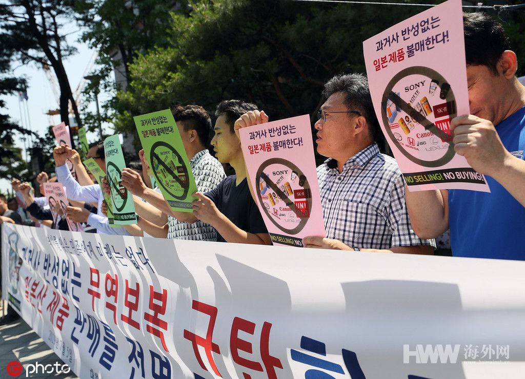 韩国民众在日使馆前集会 举牌呼吁“抵制日货”