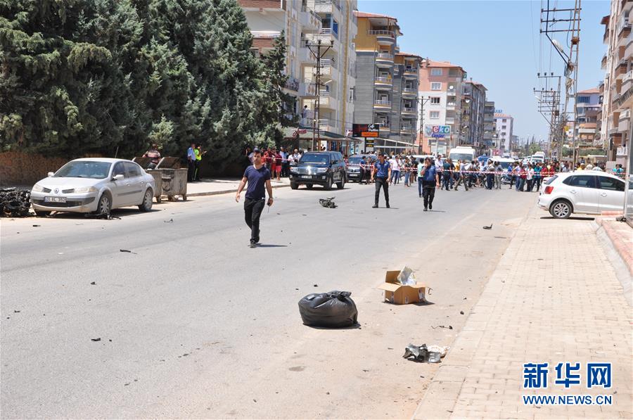 7月5日,在土耳其哈塔伊省雷伊汉勒,警方封锁汽车爆炸事件现场。 新华社发