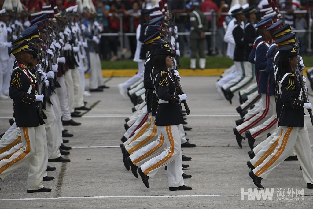 委内瑞拉举行独立日阅兵 民兵抱食品箱行进