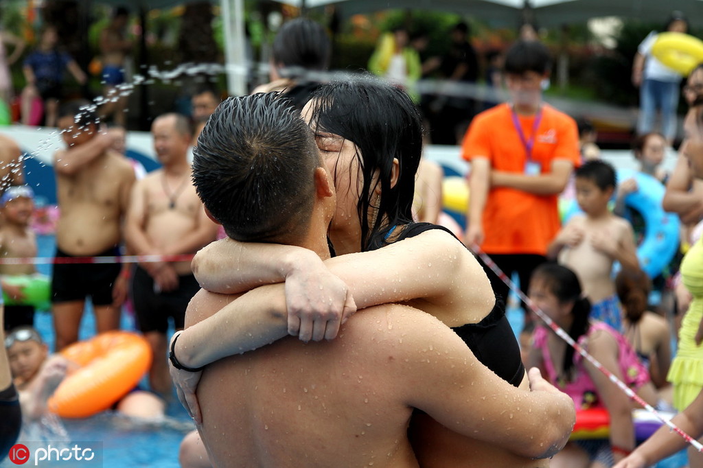 世界接吻日 重庆一景区为情侣举办水上花式接吻赛