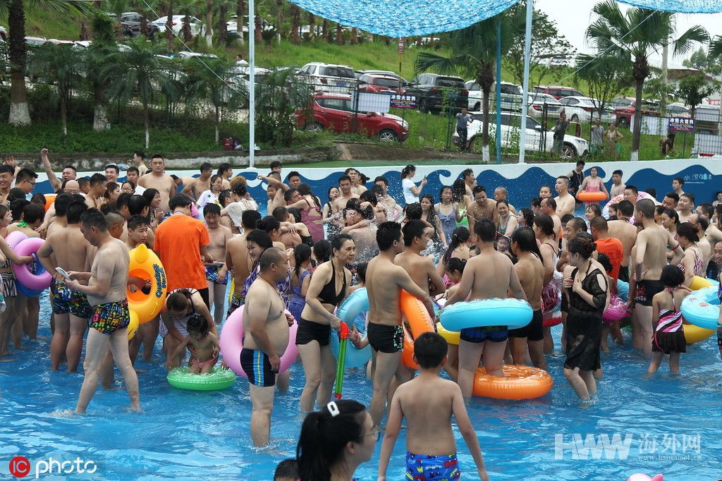7月6日,世界接吻日,重庆涪陵红酒小镇景区为情侣举行水上花式接吻赛,吸引数十对情侣参加。(图:东方IC)