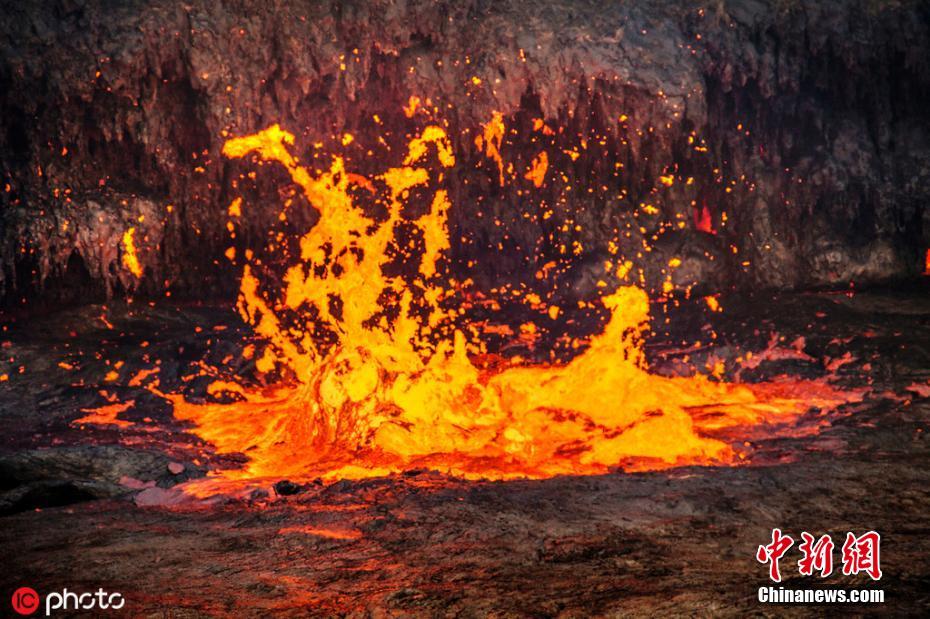 摄影师Mikhail Korostelev在埃塞俄比亚拍摄的尔塔阿雷火山熔岩湖。尔塔阿雷火山被称为埃塞俄比亚的“地狱之门”,是世界上仅存的六大熔岩湖泊之一。图片来源:icphoto
