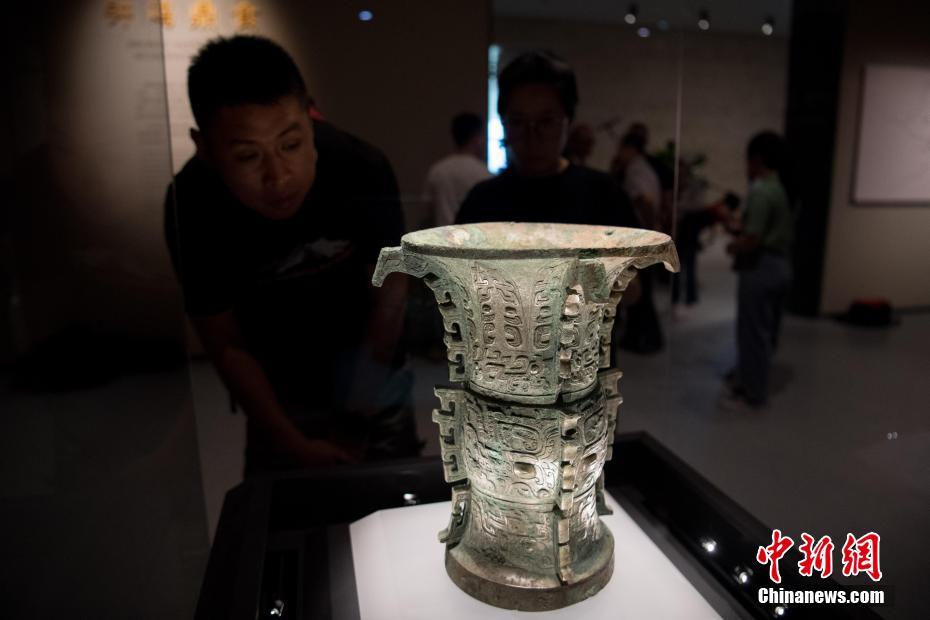 7月8日,在山西省太原市青铜博物馆,警方将追缴回国的文物“义尊”和“义方彝”陈列馆内,吸引多家媒体前来采访。山西警方此次从境外成功追回的西周时期青铜重器“义尊”和“义方彝”,均是国家一级文物。“义尊”和“义方彝”均为西周早期青铜器,从同一墓坑被盗,两件珍贵青铜器上有相同的铭文,均为“隹十又三月丁亥,武王赐义贝三十朋,用作父乙宝尊彝”。中新社记者 韦亮 摄