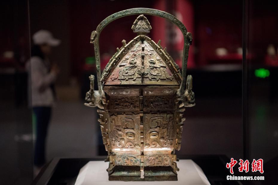 7月8日,在山西省太原市青铜博物馆,警方将追缴回国的文物“义尊”和“义方彝”陈列馆内,吸引多家媒体前来采访。山西警方此次从境外成功追回的西周时期青铜重器“义尊”和“义方彝”,均是国家一级文物。“义尊”和“义方彝”均为西周早期青铜器,从同一墓坑被盗,两件珍贵青铜器上有相同的铭文,均为“隹十又三月丁亥,武王赐义贝三十朋,用作父乙宝尊彝”。图为“义方彝”。中新社记者 韦亮 摄