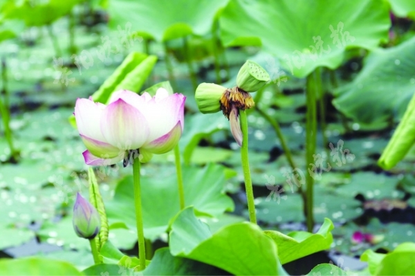 高坊村的荷田至少已有5年。其中,属于观赏荷花的莲田,最鼎盛时连片上百亩,种有10多个品种的荷花,以及各色睡莲。但两年多前开始,因一项工程建设,该片荷田被切割成小块,观赏荷花残留不足20亩,也没有专门管护,任其自然萌发、生长。
