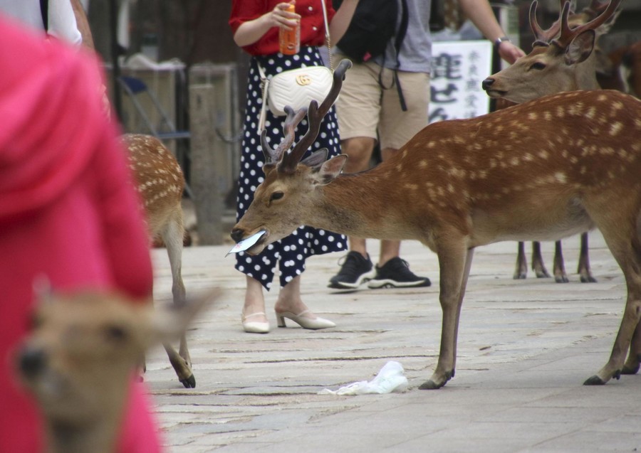 据日本NHK电视台10日报道,奈良公园的鹿保护团体“奈良之鹿爱护会”称,2019年3月以来,总共有14头鹿死亡,其中9头的胃里都发现了塑料袋等塑料垃圾,塑料袋和点心袋已经拧成了块状,最大的“块”重达4.3公斤。工作人员称,有3头的直接致死原因就是这些塑料垃圾。