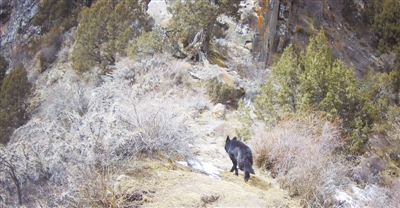 近日,青海省玉树藏族自治州曲麻莱县生态保护和野生生物监测协会成员索南达杰在团结村代曲大峡谷为红外相机更换电池和储存卡时,意外发现红外相机拍摄到黑狼。这是继2018年三江源地区首次记录到黑狼这一物种之后,第二次捕捉到黑狼影像。