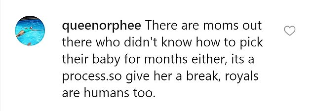 不过,也有很多网友站出来为梅根王妃辩护,其中大部分为女性,她们认为,初为人母,抱孩子都有不专业的时候,王室成员也是人,都需要有一个过程。有一位不喜欢王室成员的网友说:“我非常不喜欢这个女孩(梅根),但你不能贬低她,因为她又不是专业抱娃的。”
