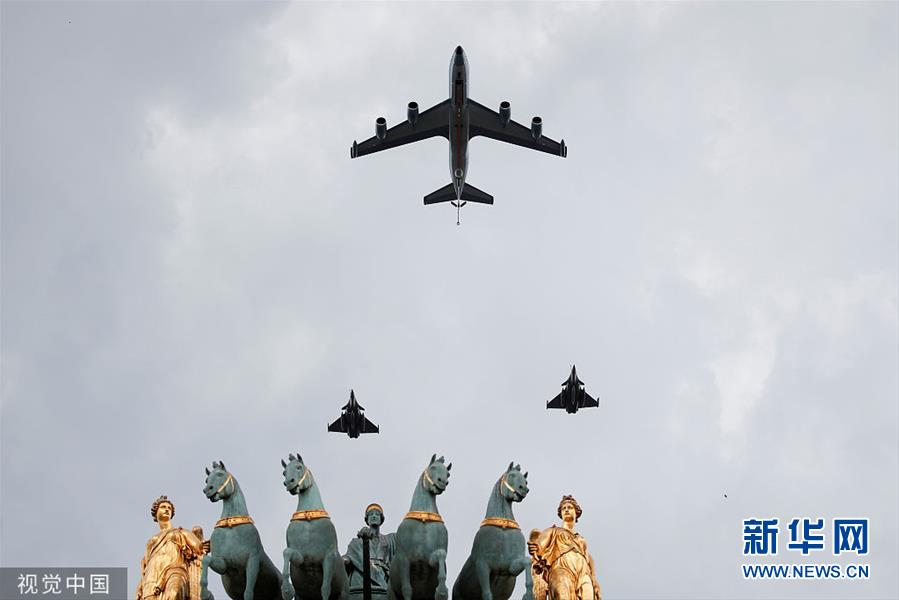 当地时间7月11日,法国巴黎,法国即将于7月14日迎来国庆节,阅兵飞机表演彩排正在有条不紊地进行中。(图片来源:视觉中国)