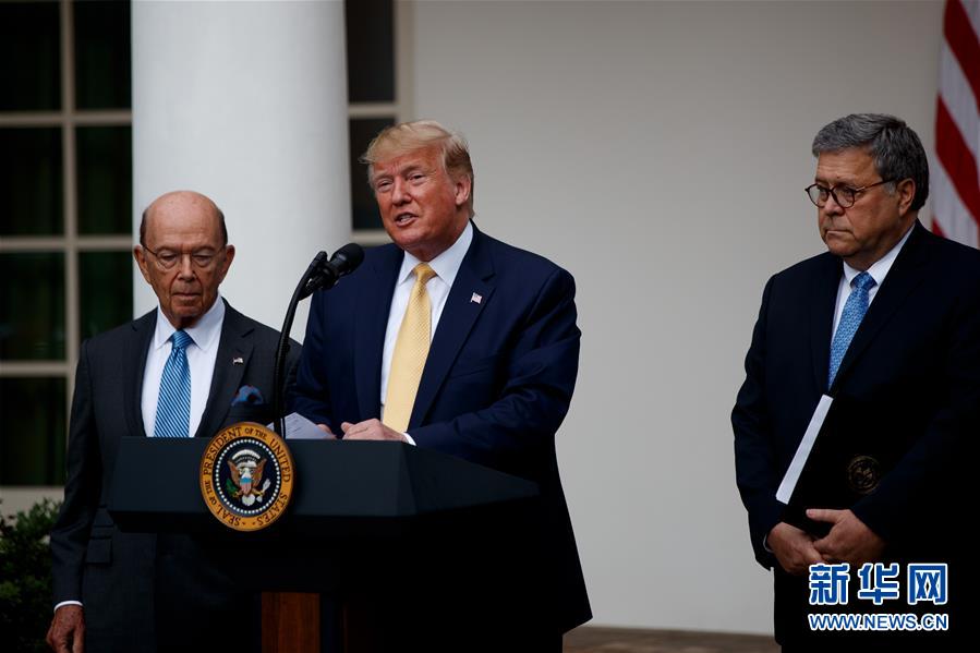 7月11日,在美国华盛顿,美国总统特朗普(中)在白宫举行记者会。 美国总统特朗普11日在白宫宣布,放弃在2020年美国人口普查中询问公民身份。特朗普同时表示,他的立场没有“后退”,只是另辟途径,通过行政令指示联邦机构使用现有数据库向人口普查局隶属的商务部报告相关统计。 新华社发(沈霆 摄)