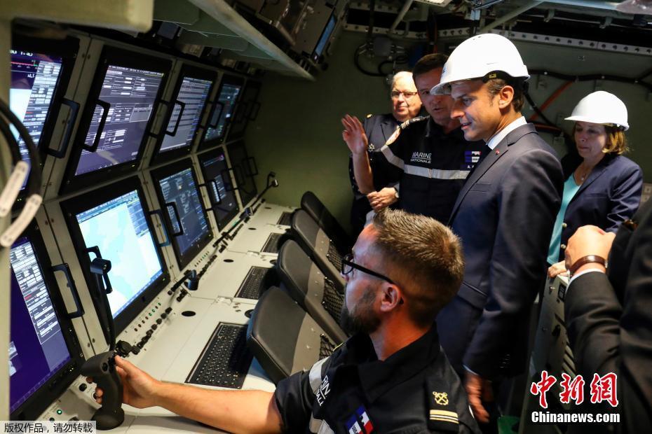 法国总统马克龙在国防部长帕利的陪同下出席了当天的官方仪式并视察了潜艇内部。