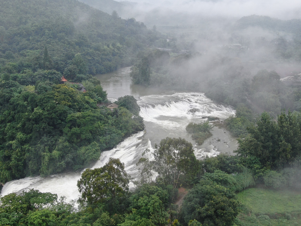 贵州安顺:航拍黄果树风景区 雨后云雾飘逸似仙境