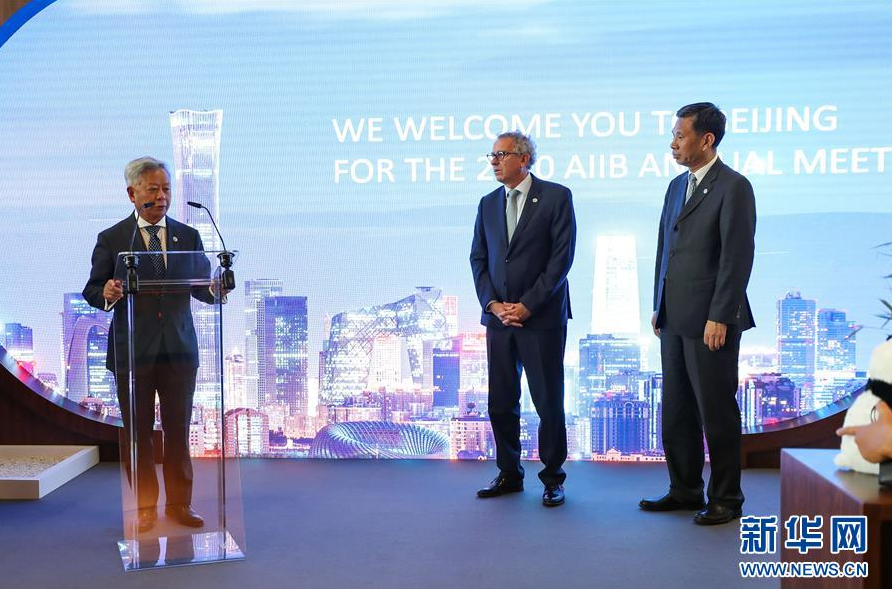 7月13日,亚投行行长金立群(左)在亚投行理事会主席及年会举办地交接仪式上发言。 新华社记者 张铖 摄