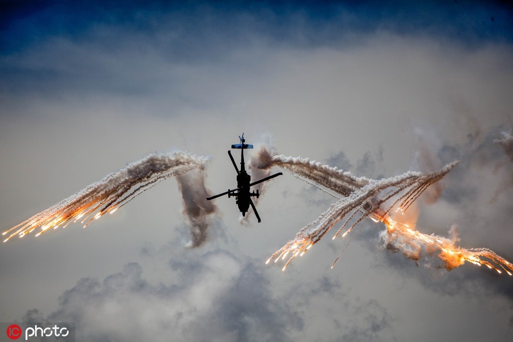 哥伦比亚新式直升机亮相航展 苍穹下冲上云霄宛若火凤凰