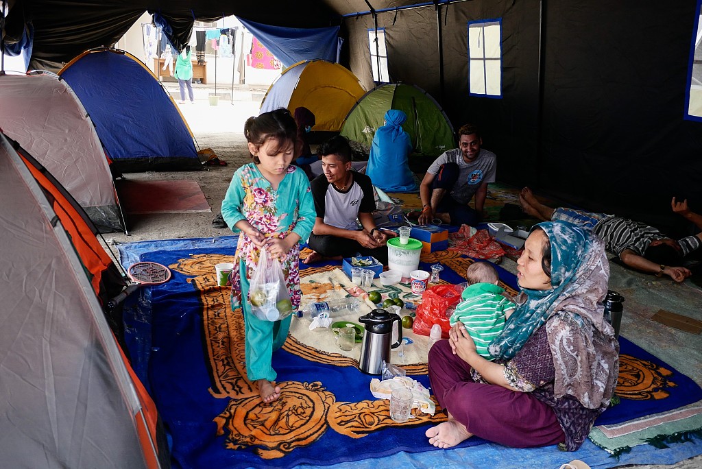 当地时间2019年7月15日,印尼雅加达,雅加达政府为来自阿富汗、索马里、巴基斯坦和苏丹的移民提供避难所,为移民检查身体健康并提供食物。图源:视觉中国