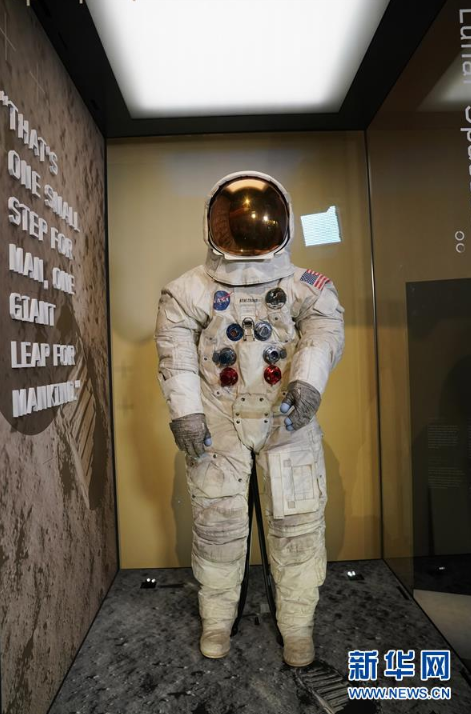 7月16日,在美国华盛顿的国家航空航天博物馆,美国宇航员阿姆斯特朗的登月宇航服向公众展出。 当日,作为阿波罗11号飞船登月50周年纪念活动之一,阿姆斯特朗的登月宇航服在13年后重新在美国国家航空航天博物馆展出。 新华社记者 刘杰 摄