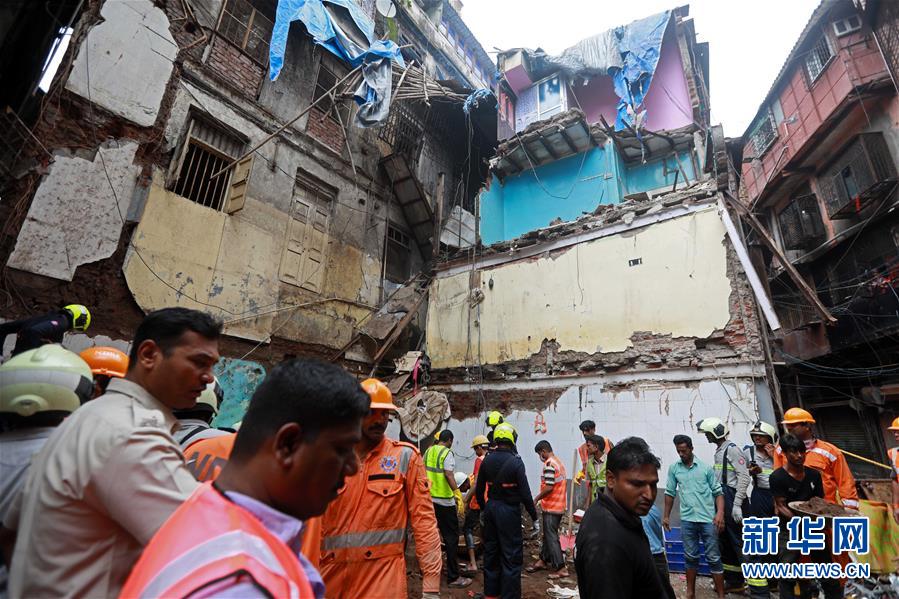 7月17日,在印度孟买,救援人员在坍塌事故现场搜救。 印度警方17日说,孟买南部16日发生的楼房坍塌事故遇难人数已升至14人,另有多人受伤送医。 新华社发