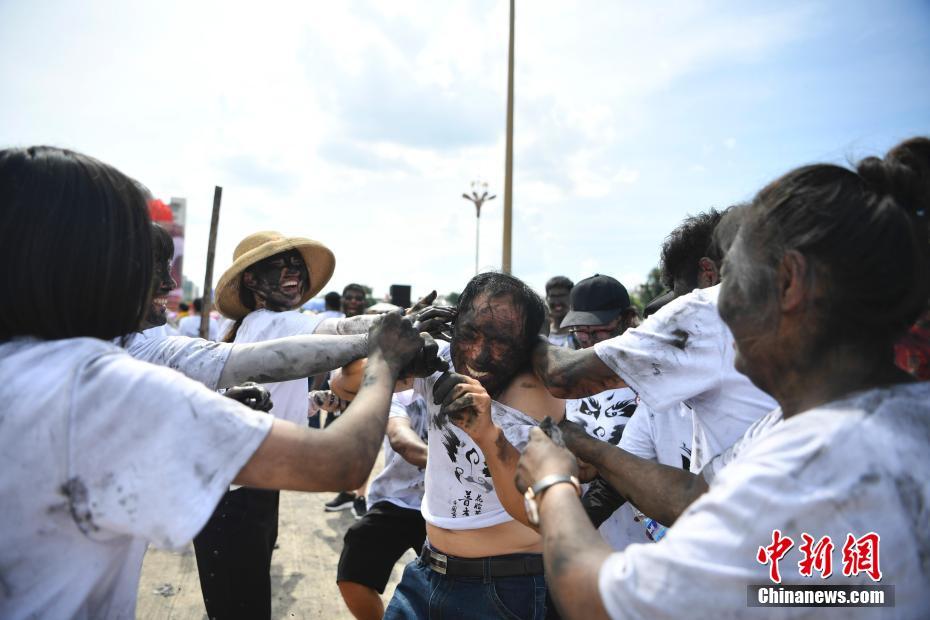 云南民众欢度“花脸节” 互相“抹黑”送祝福