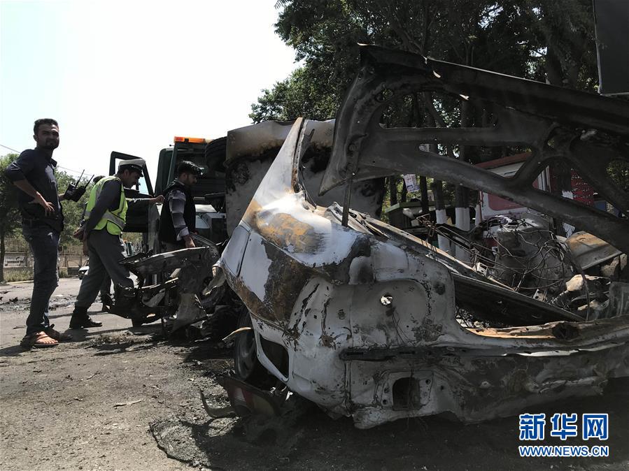 7月19日,在阿富汗首都喀布尔,安全人员检查爆炸现场。 新华社发(拉赫马特·阿里扎达 摄)