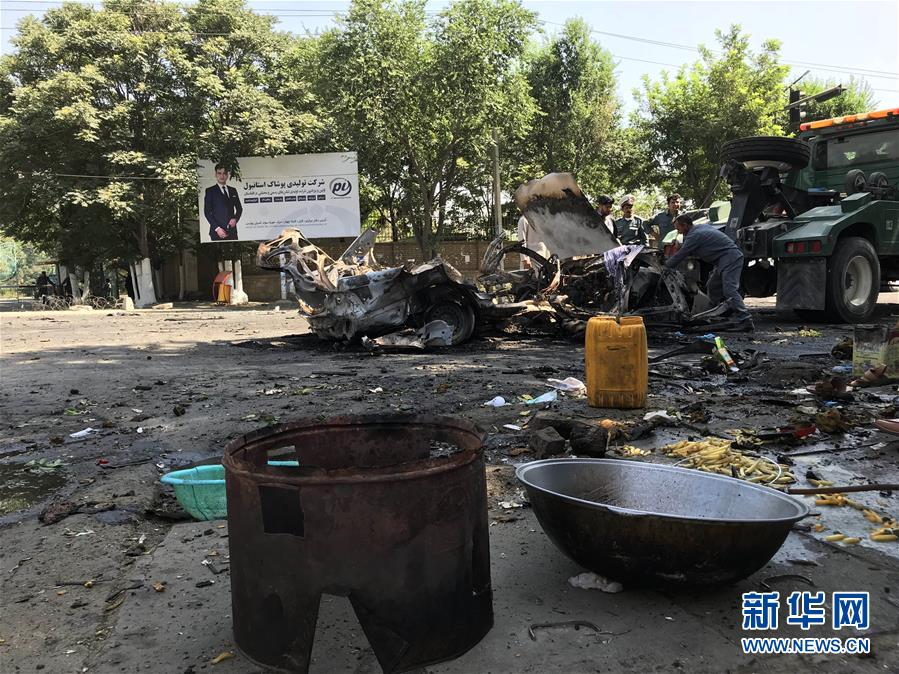 7月19日,在阿富汗首都喀布尔,安全人员检查爆炸现场。 新华社发(拉赫马特·阿里扎达 摄)