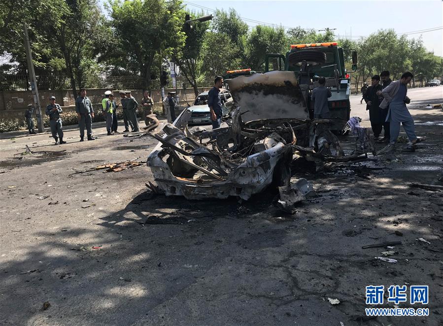 7月19日,在阿富汗首都喀布尔,安全人员检查爆炸现场。 新华社发(拉赫马特·阿里扎达 摄)