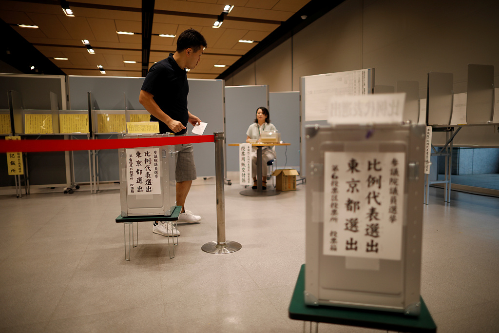 当地时间2019年7月21日,日本东京,日本第25届参院选举于21日投票,当日开始计票。选民将对第二届政府上台以来,持续6年半的首相安倍晋三的政权运营做出“审判”。赢得参院选举将可让安倍继续担任首相直到11月,届时他将成为在位最长久的日本首相。图源:视觉中国