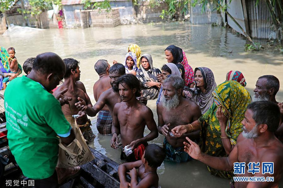 孟加拉国遭洪水侵袭 灾民领取救援物资