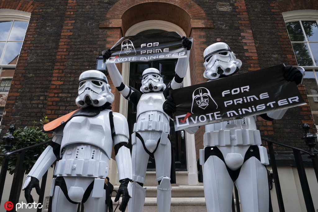 英新任首相将揭晓 示威者扮《星战》暴风兵围堵约翰逊办公室