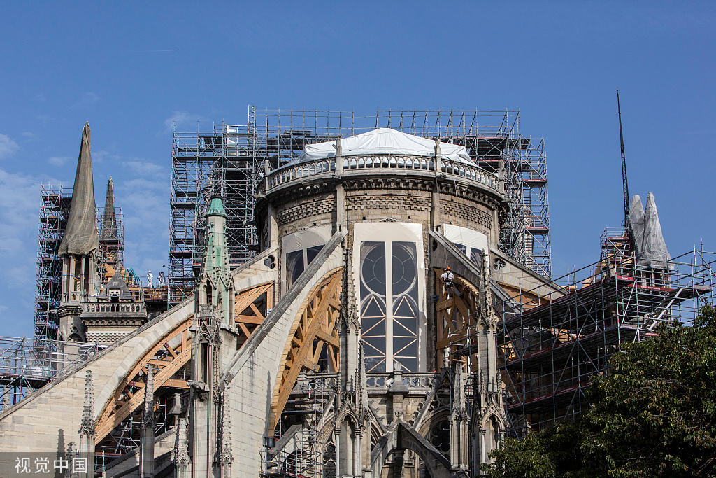 当地时间2019年7月24日,法国巴黎,大火后巴黎圣母院的修复工作持续进行。