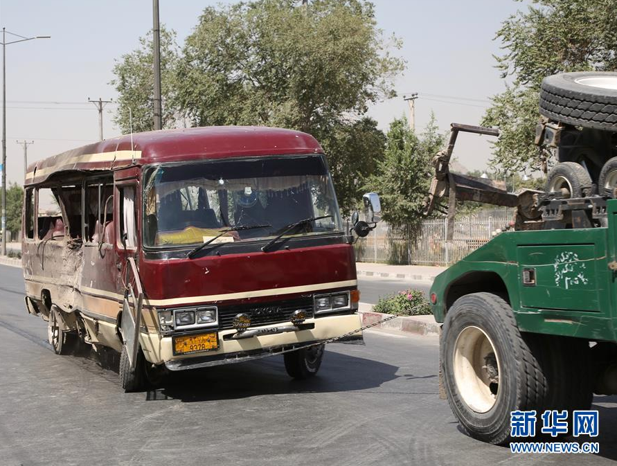 这是7月25日在阿富汗首都喀布尔拍摄的遭遇炸弹袭击的客车。 阿富汗政府官员25日说,首都喀布尔多个地点当天上午遭遇炸弹袭击,目前至少有5人死亡、10人受伤。当地时间8时10分左右,喀布尔第16警区一辆载有阿矿业部员工的客车遭遇炸弹袭击,至少有5人死亡、10人受伤。之后不久,喀布尔另外两个地点又发生爆炸,伤亡情况不明。 新华社发(拉赫马图拉·阿里扎达 摄)